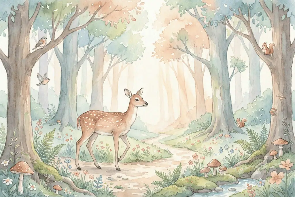 Bos Behang Hert Pastel met Sprookjesachtig Dierenbos