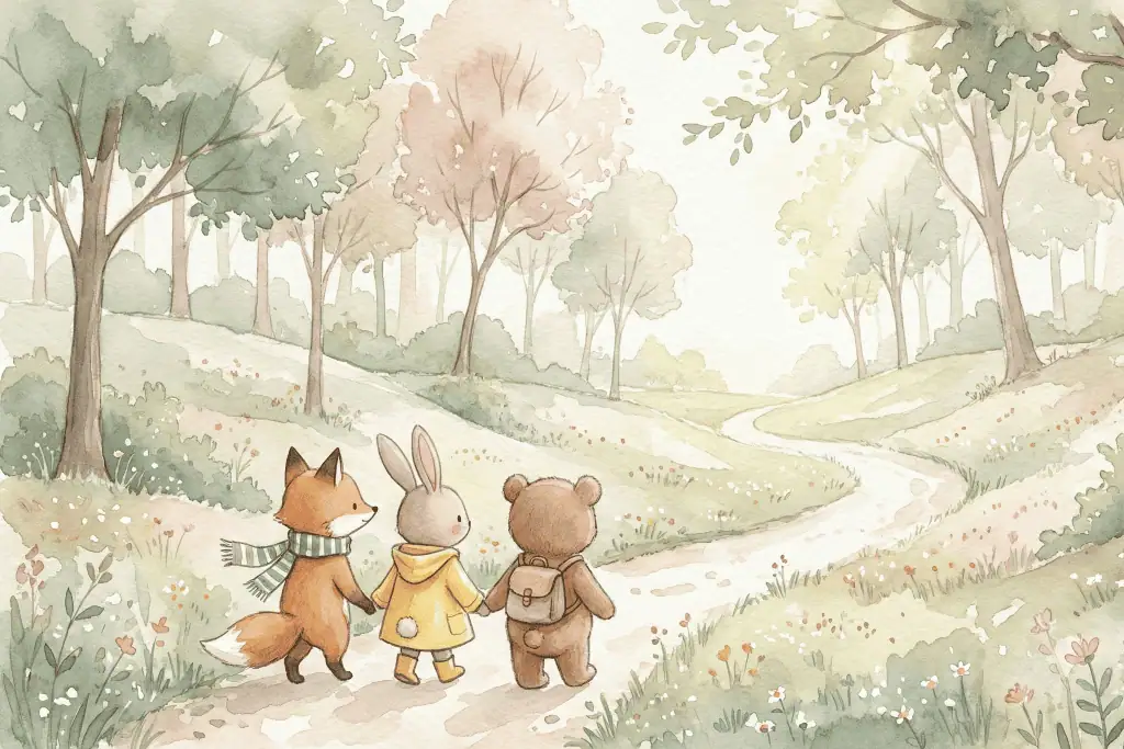 Dieren Behang Pastelwandeling met Bosvriendjes in Zacht Bos