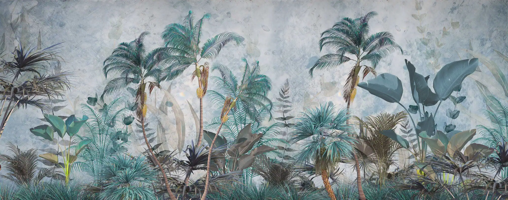 Jungle behang blauwgroen tovert je muur om tot een tropische oase vol diepte en sfeer. Dit fotobehang beeldt weelderige palmen en grote bladeren in diverse blauwgroene tinten af tegen een zachte, aquarelachtige achtergrond. Je haalt het gevoel van een botanische tuin in huis: fris, natuurlijk en toch modern. Ideaal voor liefhebbers van botanisch wonen en iedereen die verlangt naar een groene, levendige uitstraling zonder drukte. Elk behang wordt op maat geproduceerd en vakkundig gemonteerd, zodat je muur één naadloos geheel vormt. Zo geniet je zorgeloos van een perfecte afwerking.