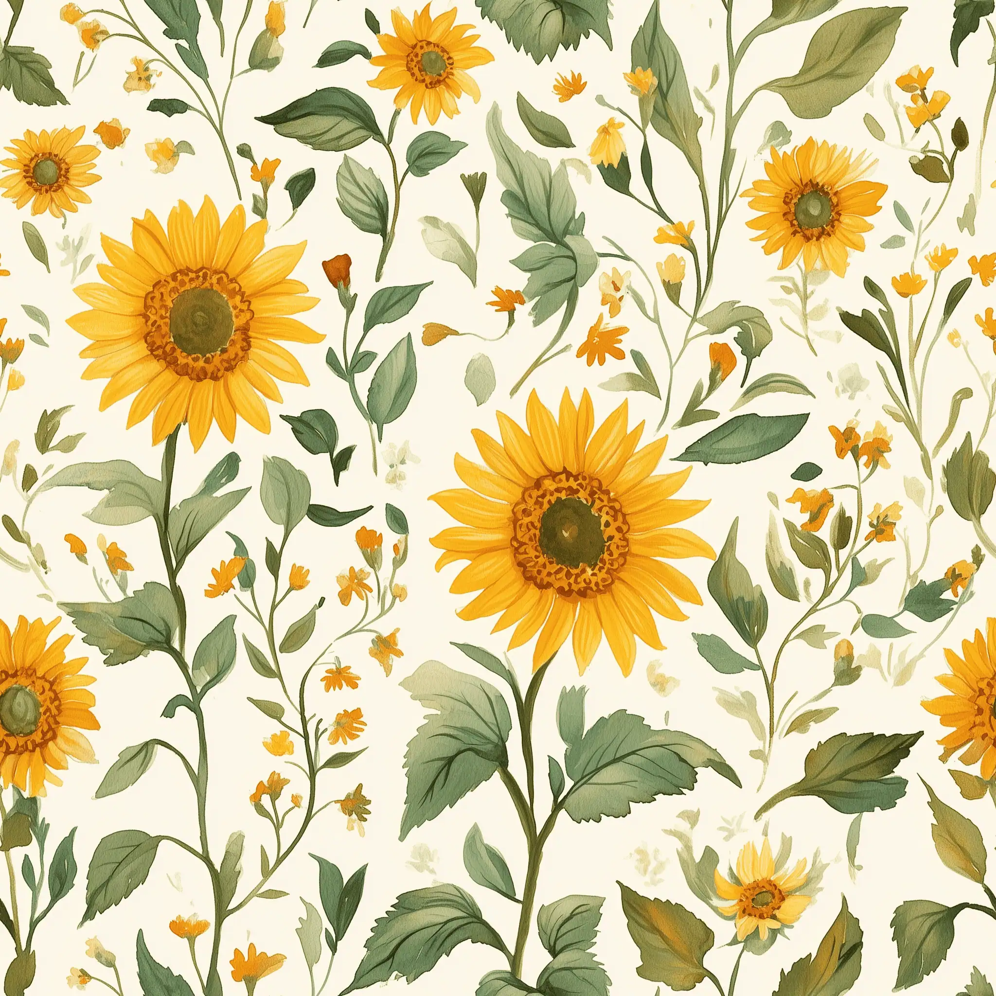 Natuurlijk Zonnebloemen Tuin Behang met Groene Bladeren