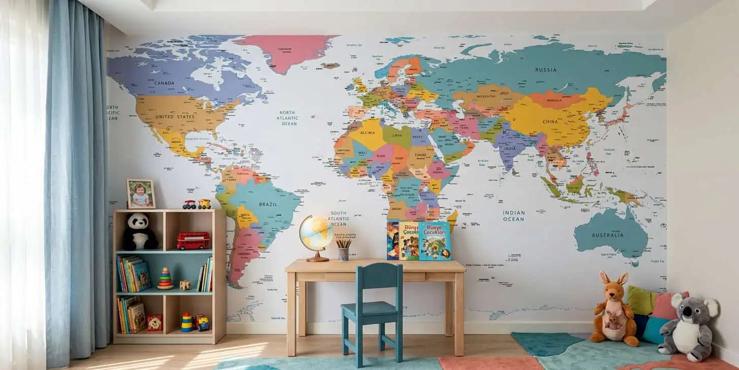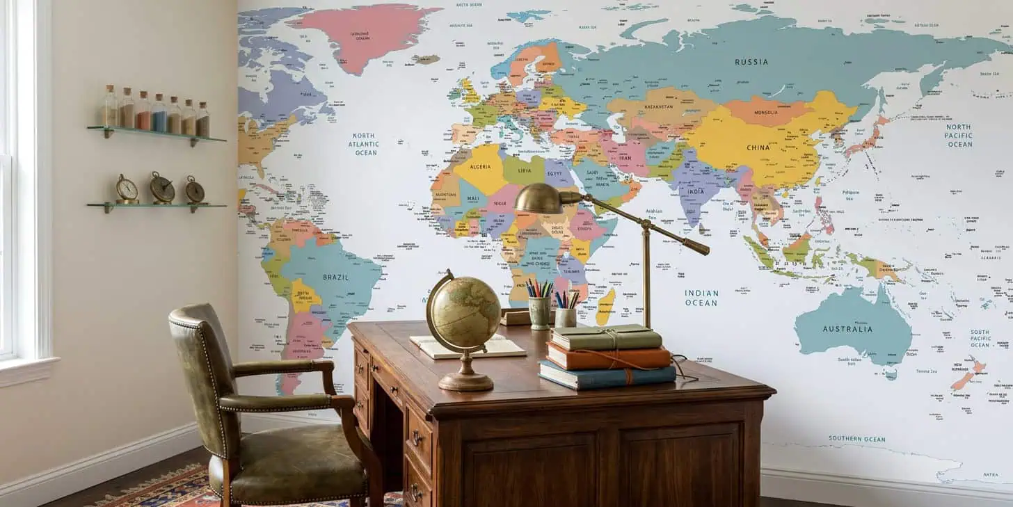 Wereldkaart behang voor kinderkamer, slaapkamer en kantoor
